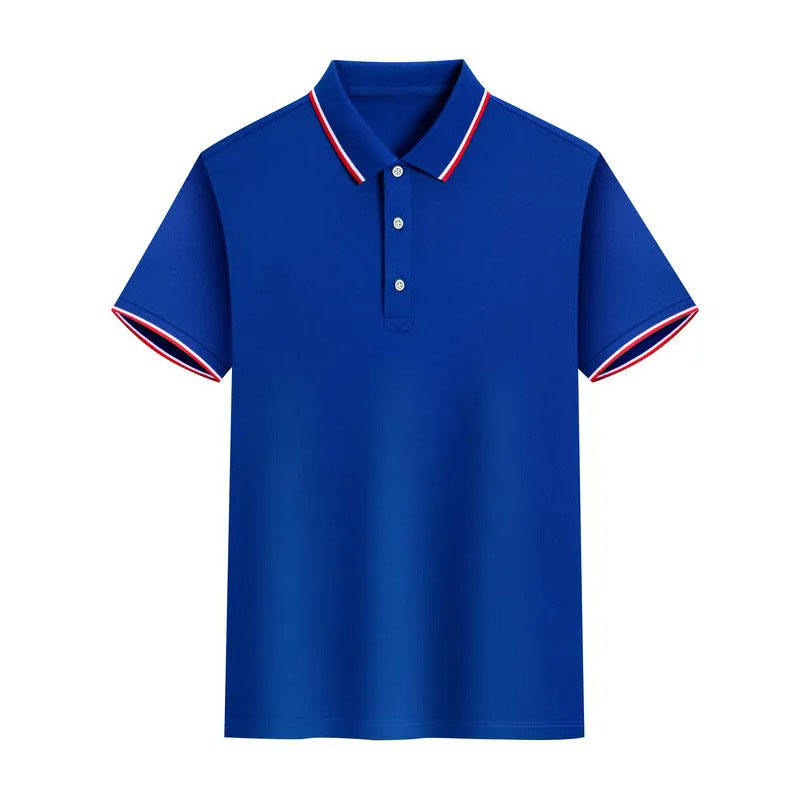 เสื้อโปโลผ้าฝ้าย100% แห้งเร็วเสื้อยืดโปโลผู้ชายสีฟ้า