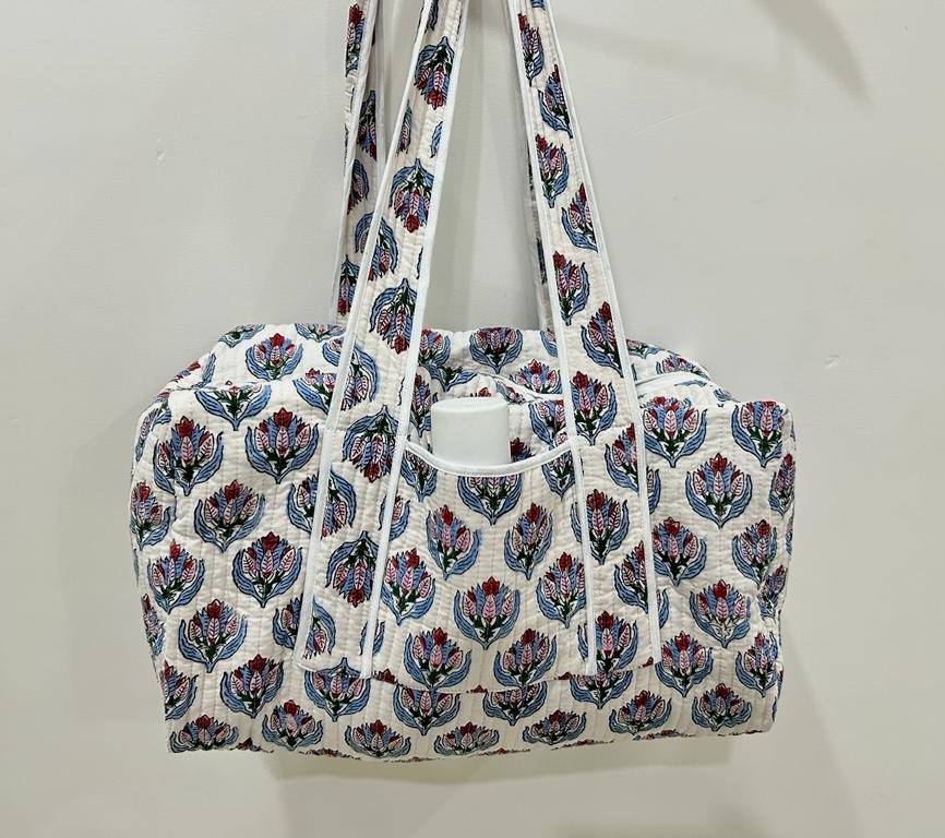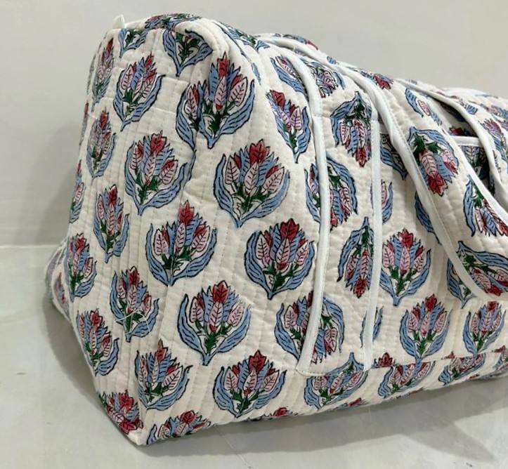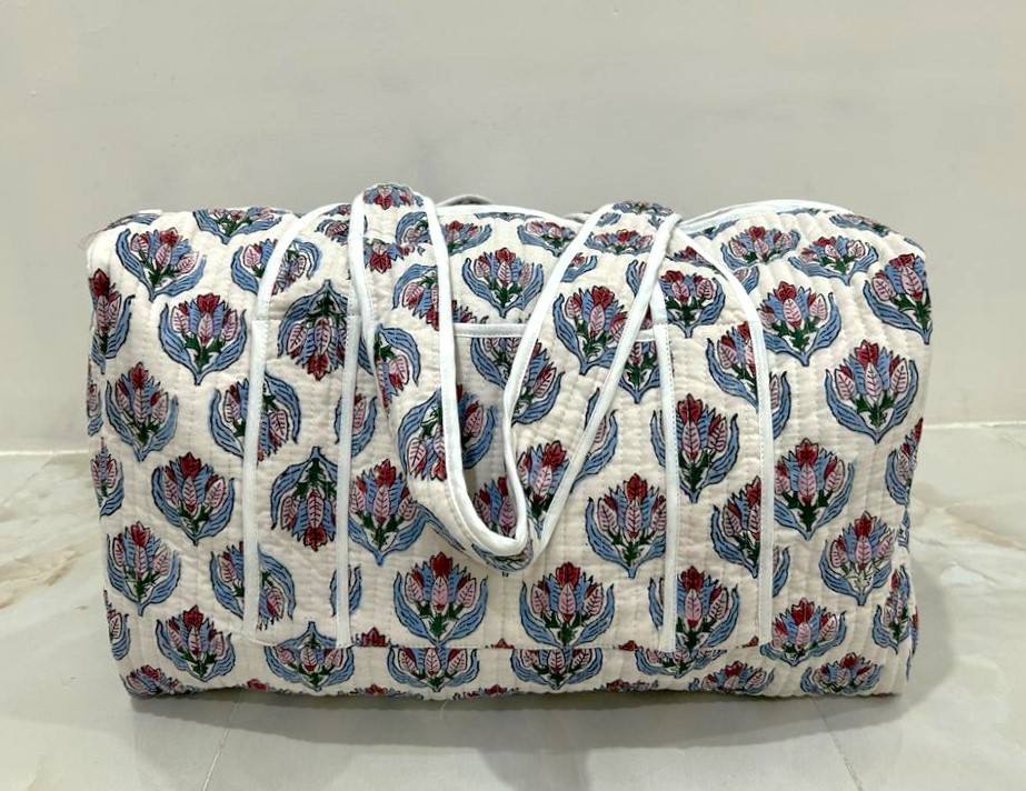 กระเป๋าผ้าดัฟเฟิลผ้าฝ้าย 100% ลายดอกไม้ กระเป๋าเดินทาง กระเป๋าปิกนิก กระเป๋าดัฟเฟิลสีชมพูสำหรับผู้หญิง ซักได้ ใช้ได้ทั้งไปเที่ยวทะเลและวันหยุดสุดสัปดาห์