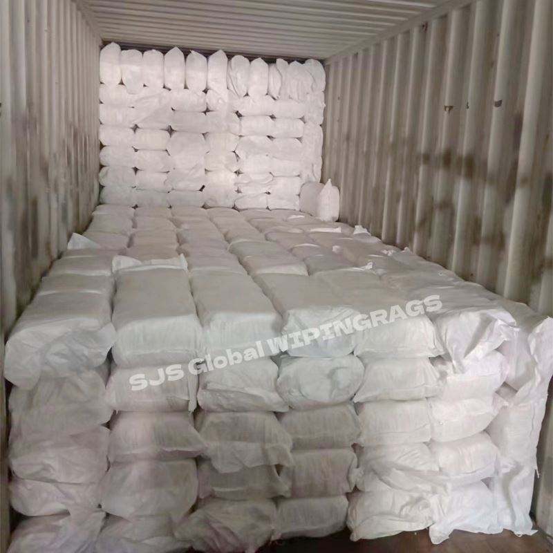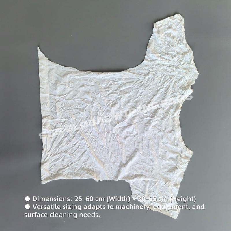 ผ้าเช็ดทำความสะอาดทำจากผ้าฝ้าย 100% เป็นมิตรกับสิ่งแวดล้อม สีขาว สำหรับใช้ในอุตสาหกรรม ตัดจากเศษผ้าที่ใช้แล้ว สีขาว รีไซเคิล