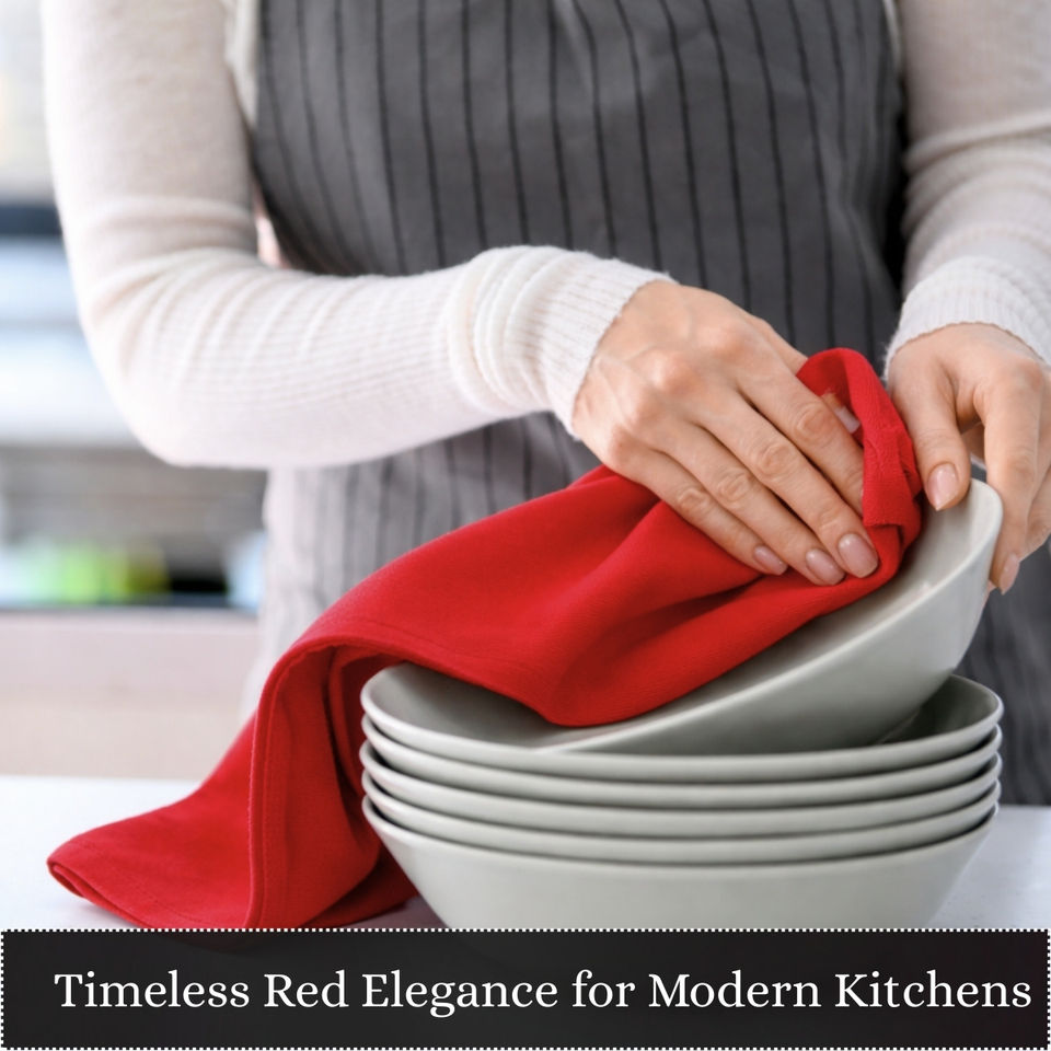 ผ้าเช็ดจานสีแดง 100% ผ้าฝ้าย ทนทาน ซักได้ ใช้ทำความสะอาดสำหรับบ้าน ร้านอาหาร และครัวโรงแรม