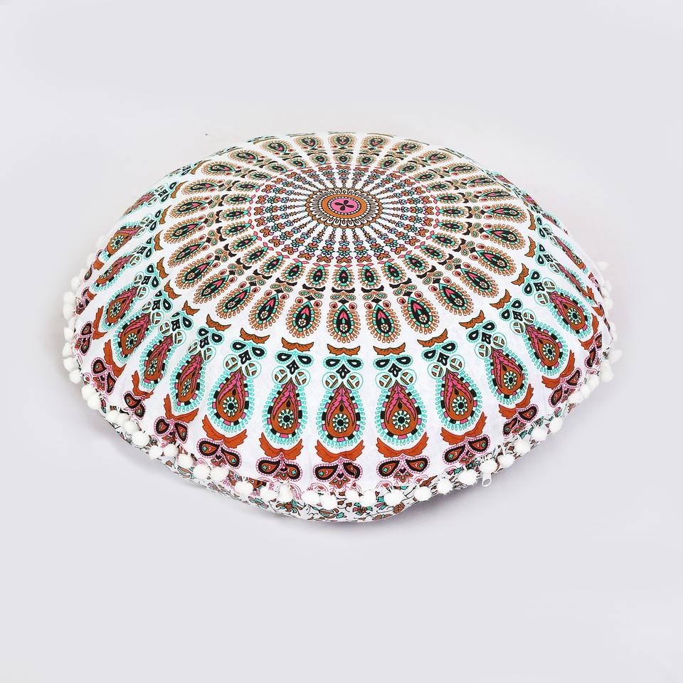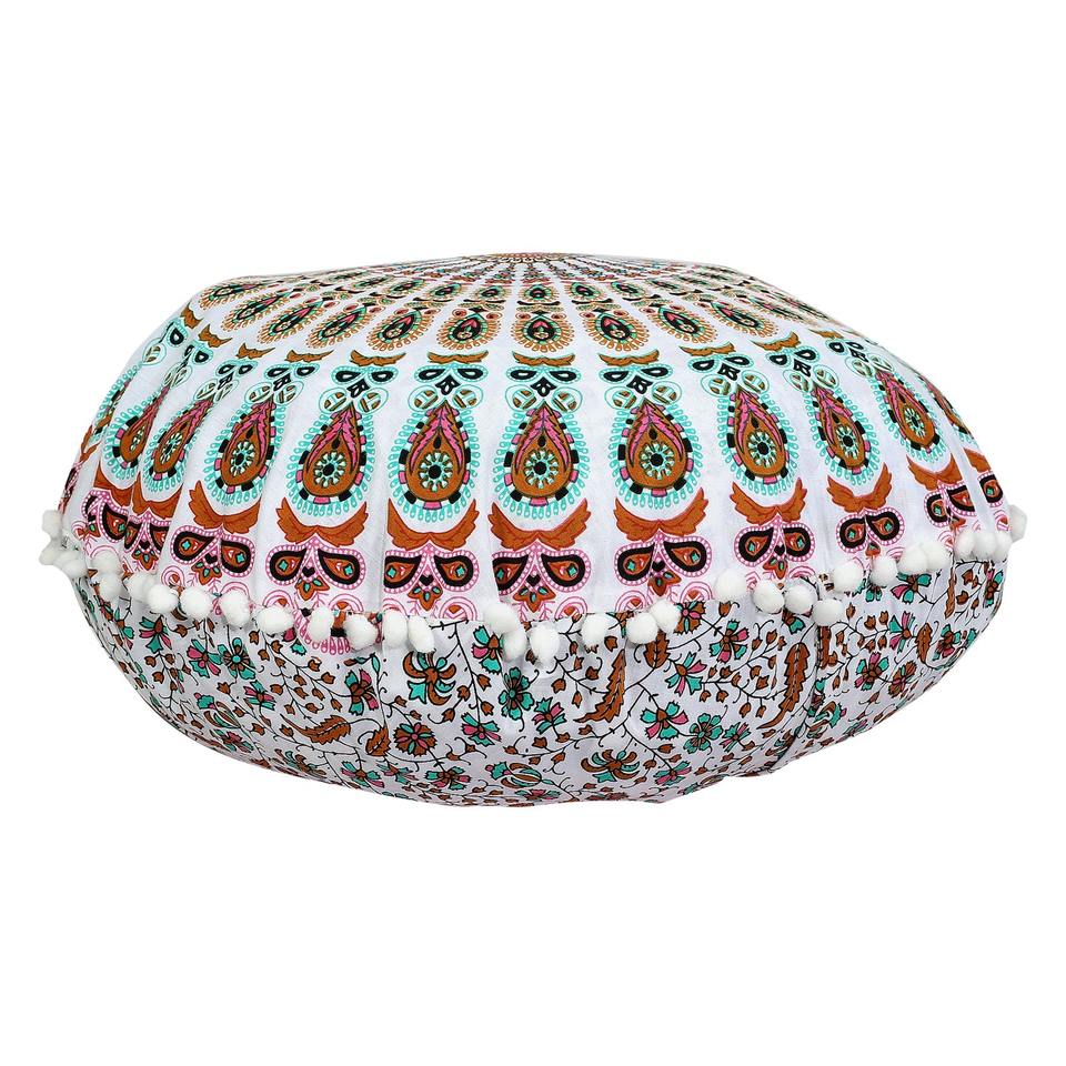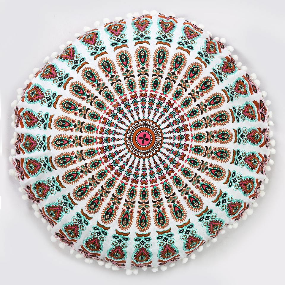 ปลอกหมอนอิงทรงกลม 100% ผ้าฝ้าย ลายมันดาลาไล่เฉดสี สำหรับนั่งสมาธิ ปลอกหมอนอิงสไตล์ชาติพันธุ์ ขนาด 32 นิ้ว พร้อมพู่ห้อย ตกแต่งบ้าน ผลิตโดยผู้ผลิตชาวอินเดีย