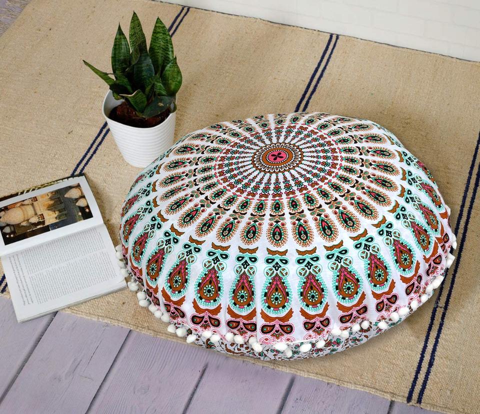 Ethnic Pouffe Mandala Floor Cushion Round Cover