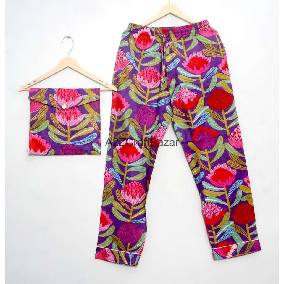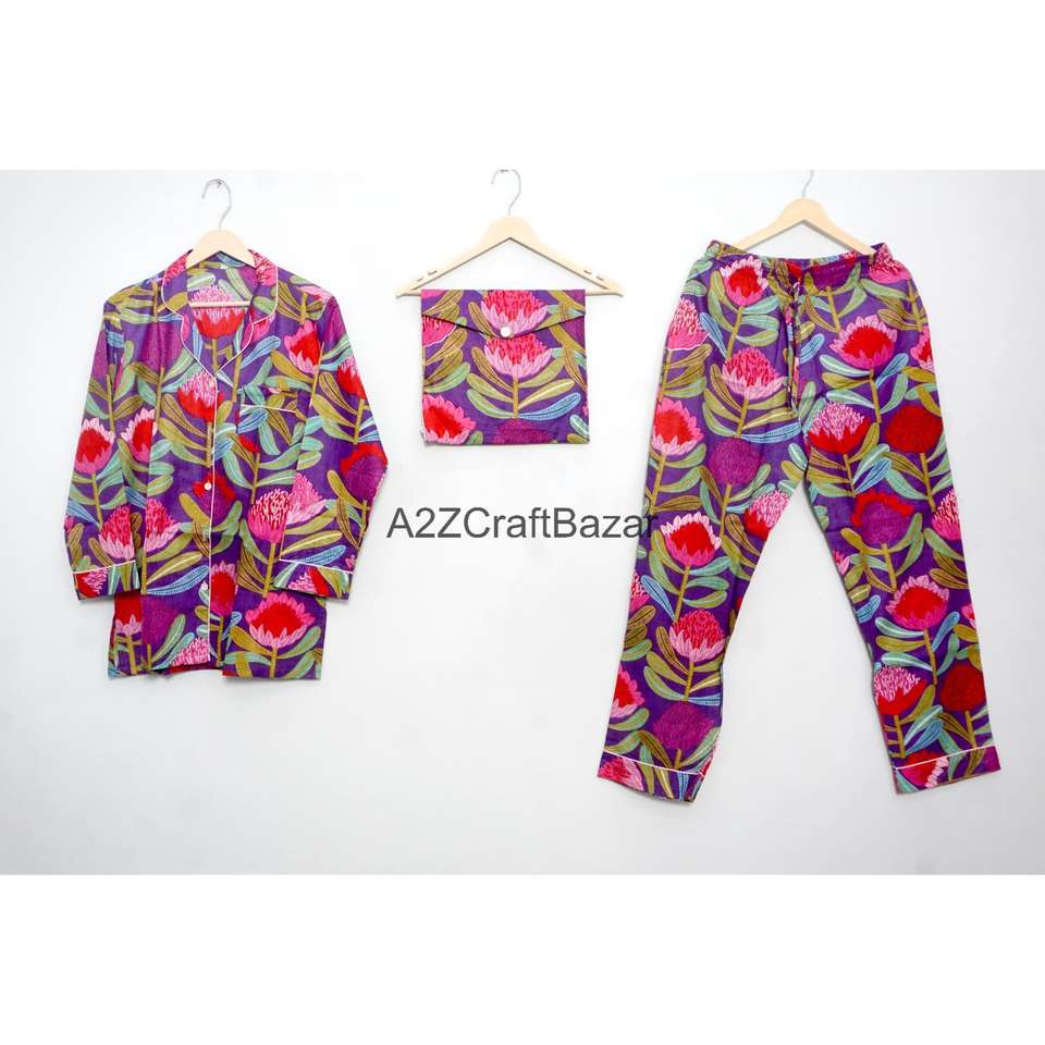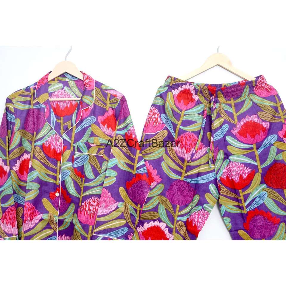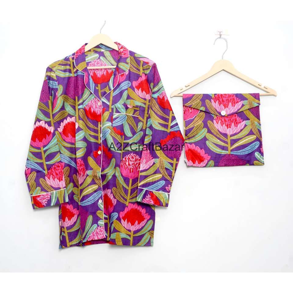 ชุดนอนเพื่อนเจ้าสาวผ้าฝ้ายแท้ 100% เนื้อนุ่ม ระบายอากาศได้ดี แห้งเร็ว ลายดอกไม้ พิมพ์ลายหรูหราสำหรับฤดูหนาว แขนสั้นขายาวสำหรับผู้หญิงสไตล์อินเดีย