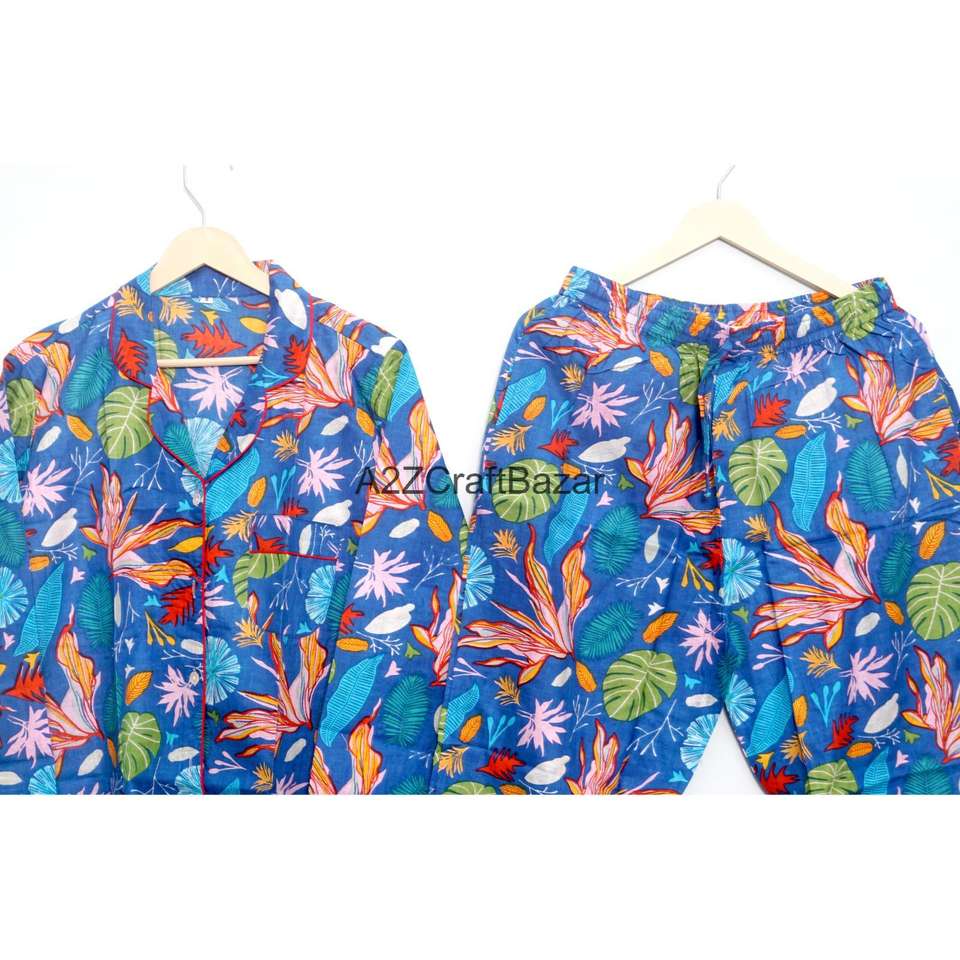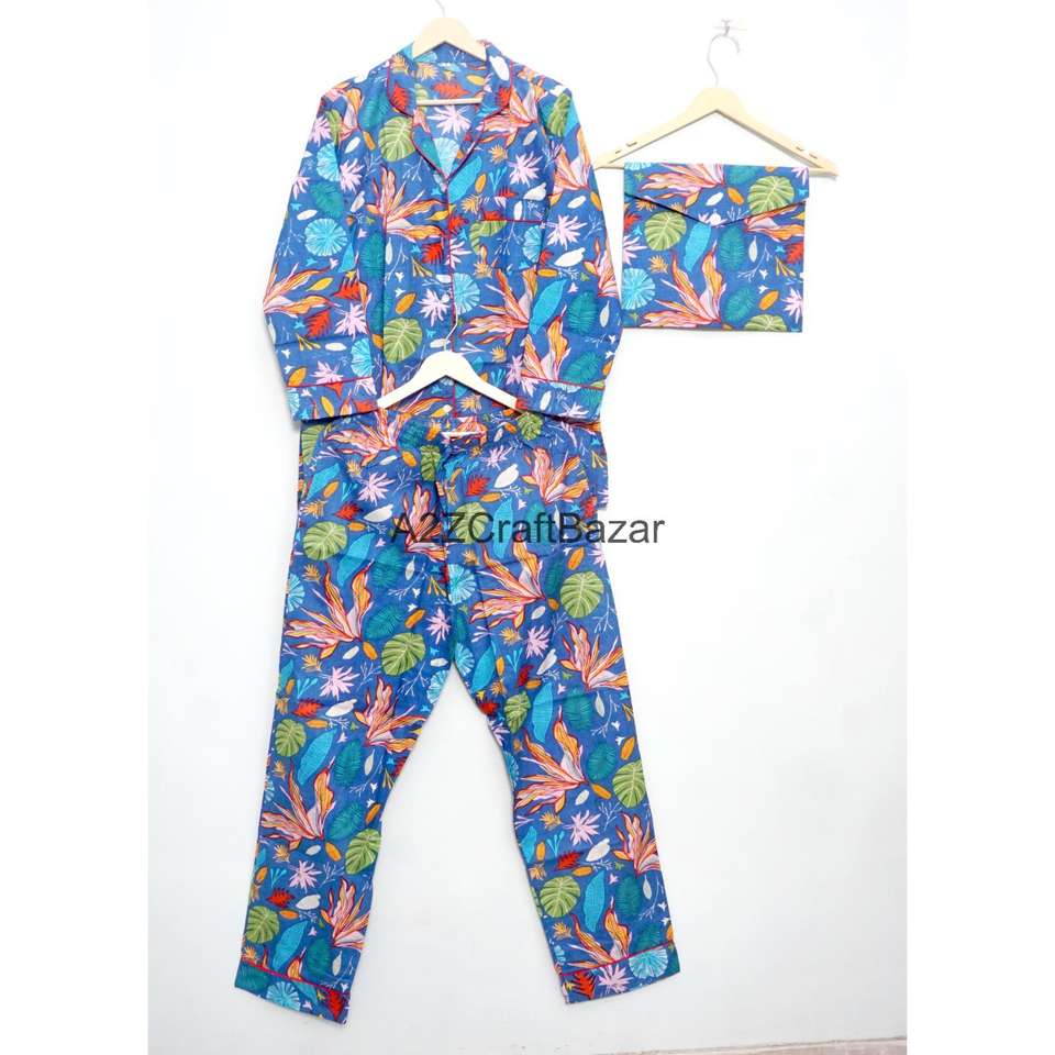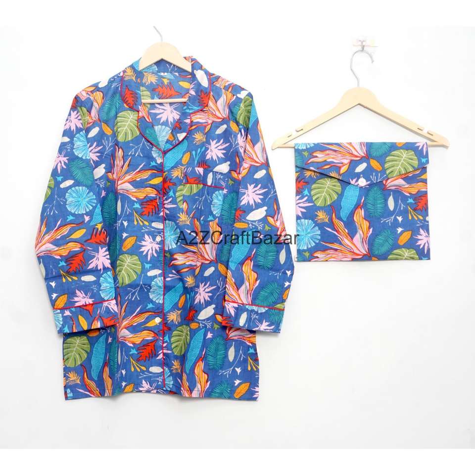 ชุดนอนเพื่อนเจ้าสาวผ้าฝ้าย 100% เนื้อนุ่ม ระบายอากาศได้ดี แห้งเร็ว ลายดอกไม้ สำหรับผู้หญิง แบบอินเดีย แขนยาวเต็มตัว เอวยางยืด