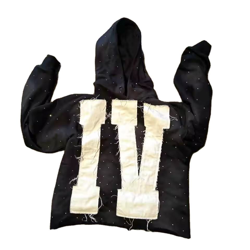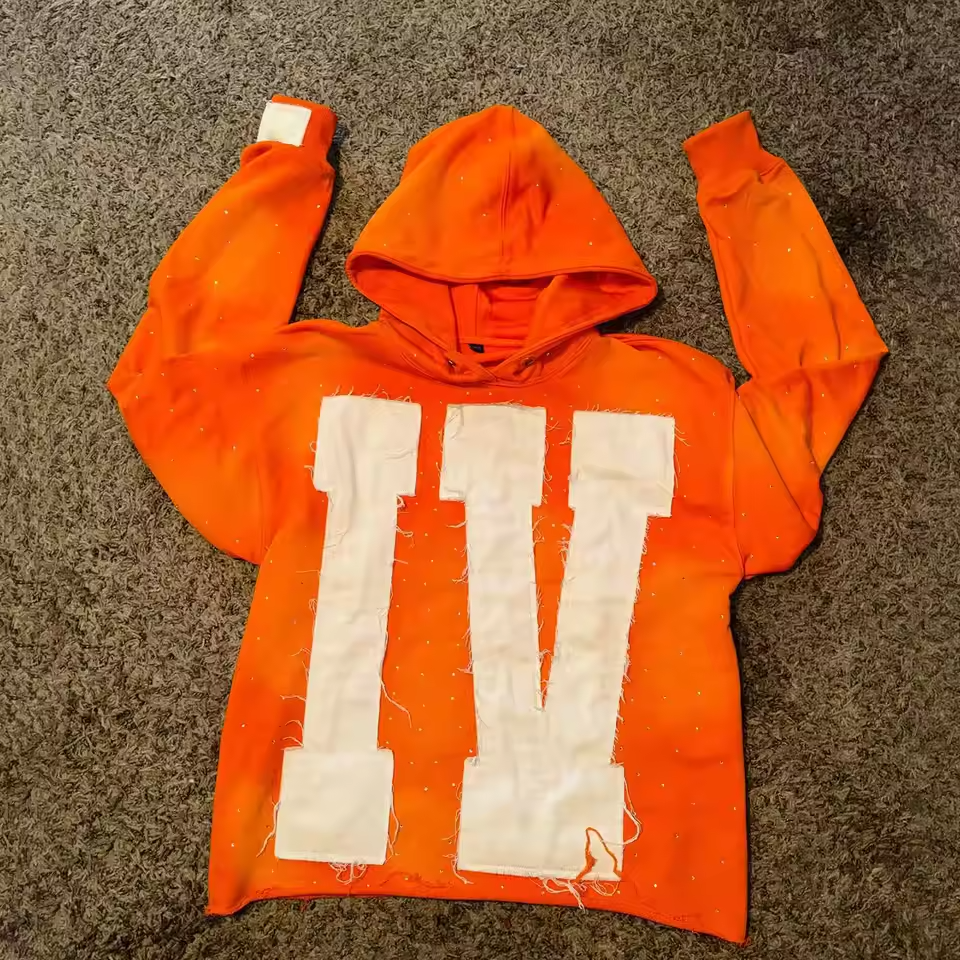 ชุดเซ็ตเสื้อฮู้ดดี้และกางเกงขายาวผ้าเทอร์รี่เนื้อผ้าฝ้ายแท้ 100% สไตล์ลำลอง แต่งลายปักแบบดิสเทรส ลวดลายวินเทจฟอกสีแบบแอซิดวอช สำหรับผู้ชาย รับสั่งทำตามแบบ