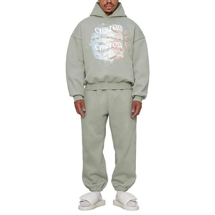 ชุดวอร์มผ้าคอตตอนมีฮู้ดแบบสวมหัวโอเวอร์ไซส์สำหรับผู้ชายชุดวอร์มผ้าฝ้ายสไตล์ฮิปฮอปสำหรับฤดูหนาวออกแบบได้ตามต้องการรวมถึง Sweatpants-2แบบมีฮู้ด