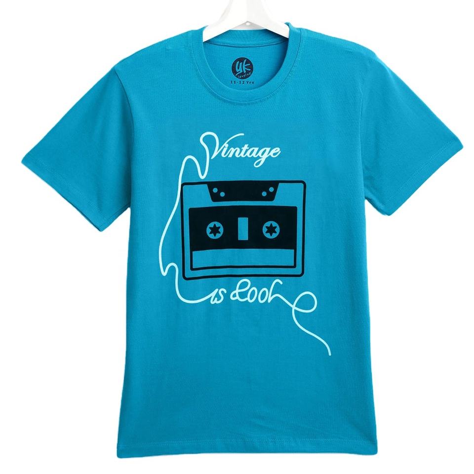 เสื้อยืดพิมพ์ลายผ้าฝ้าย100% ทำจากอินเดียสำหรับเด็กโตชายเสื้อโปโลแขนสั้นลำลองคอกลมเสื้อถักอัดแน่น
