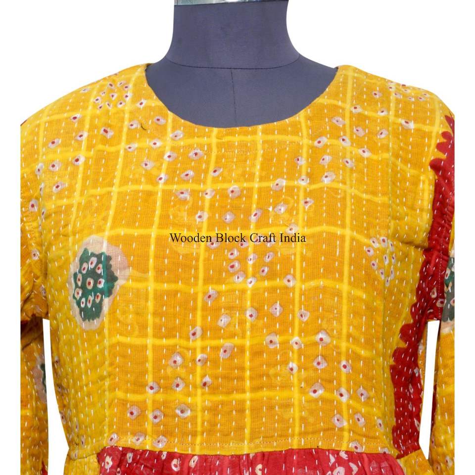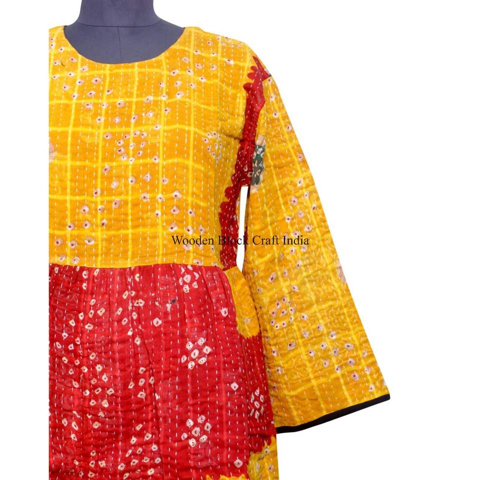 ชุดเดรสผ้าฝ้าย 100% ลายพิมพ์บล็อกแฮนด์เมดสไตล์คันธา สำหรับฤดูร้อน ชุดลำลองสำหรับใส่ไปเที่ยวทะเล ชุดเดรสสำหรับฤดูหนาว เหมาะสำหรับงานปาร์ตี้และปาร์ตี้ริมชายหาด