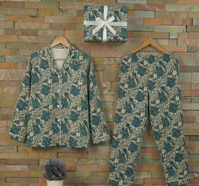 ชุดนอนผ้าฝ้ายแท้ 100% ทอลายดอก/ลายเรียบ พิมพ์ลายด้วยมือ เนื้อผ้านุ่มพิเศษ แขนยาว ระบายอากาศได้ดี สำหรับผู้หญิง ฤดูร้อน