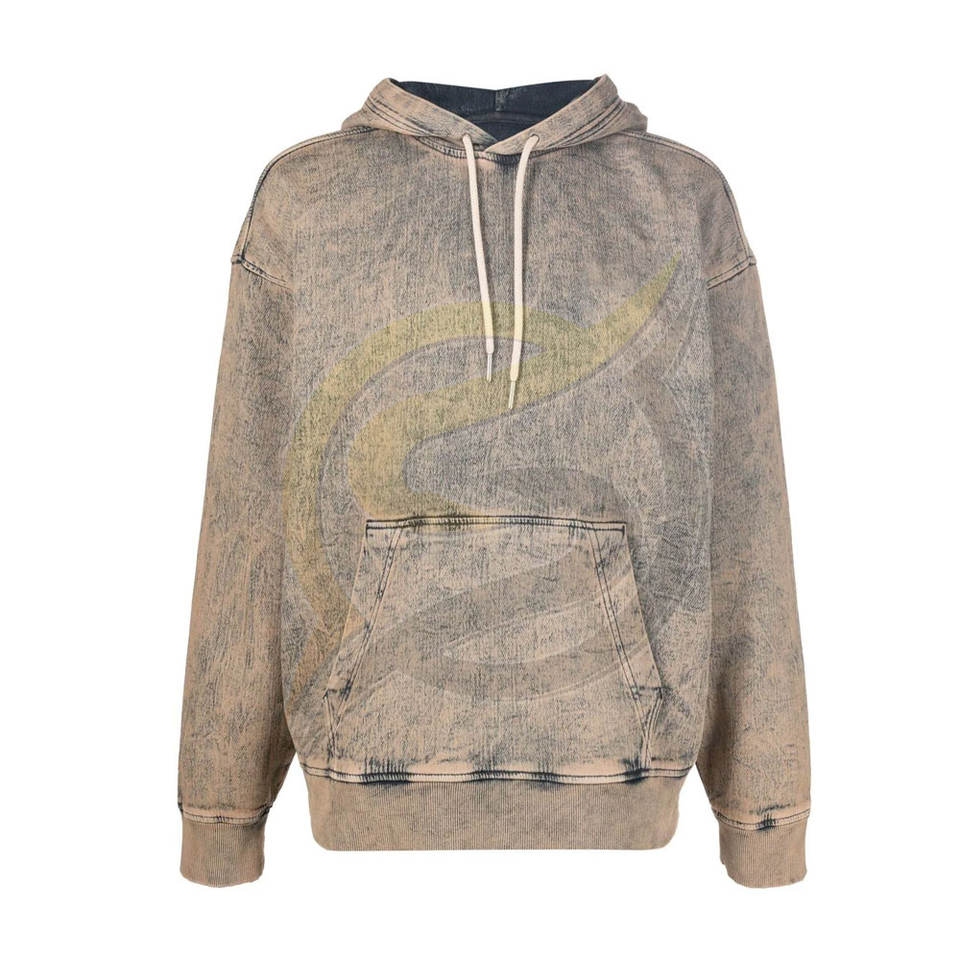 เสื้อฮู้ดดี้ผู้ชายผ้าฝ้ายแท้ 100% ล้างสีแบบแอซิดวอช สำหรับฤดูหนาว พร้อมตัวเลือกสกรีนโลโก้ กันลมและระบายอากาศได้ดี