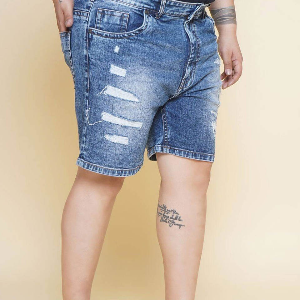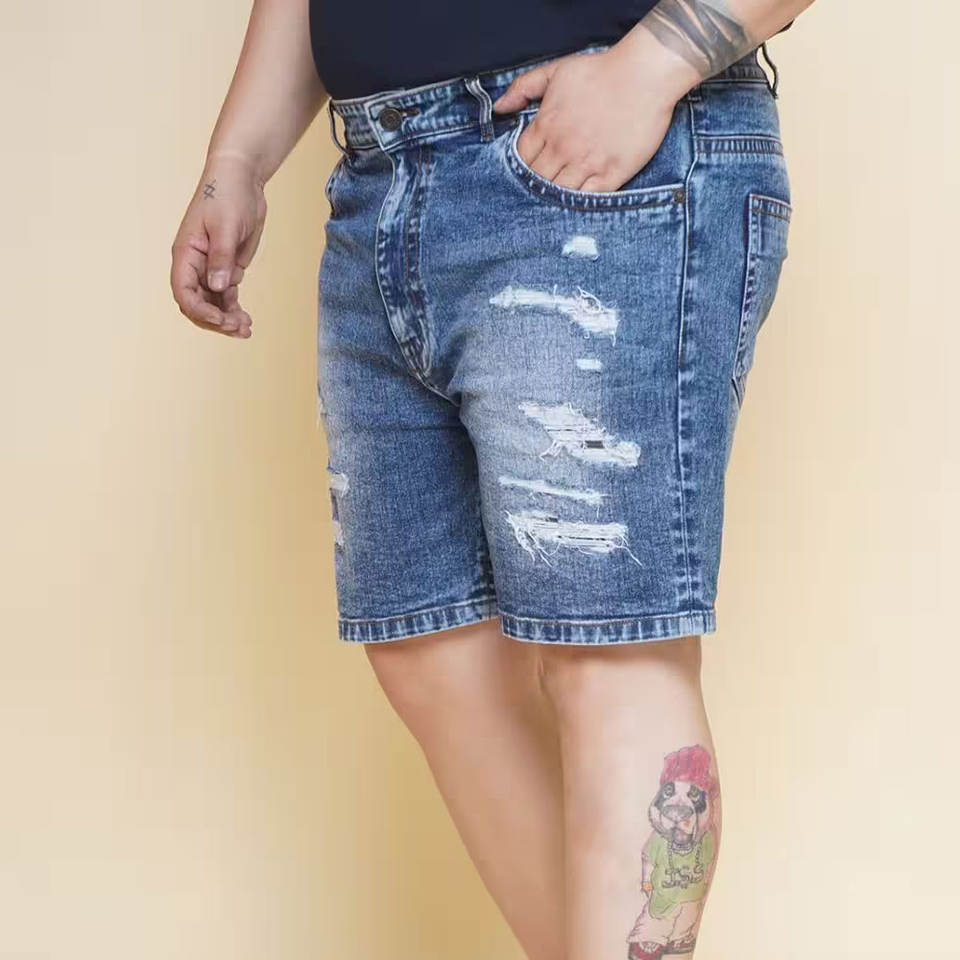 กางเกงขาสั้นผ้ายีนส์สำหรับผู้ชายผ้าฝ้าย100% ยืดได้สีฟ้าอ่อนลายคลาสสิคเอวสูงปานกลางพอดีตัว