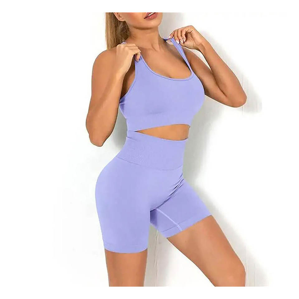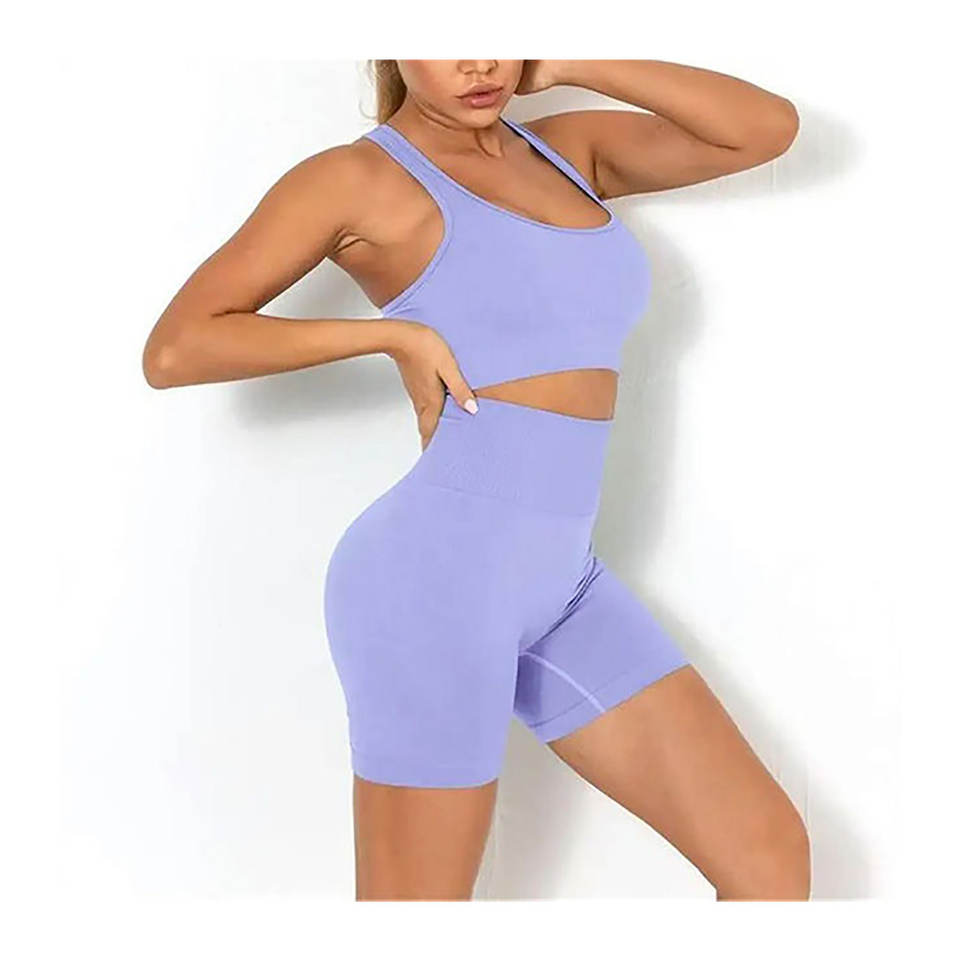 ชุดกีฬาผ้าฝ้ายกางเกงขาสั้น2ชิ้นสำหรับเล่นโยคะออกกำลังกายของผู้หญิงชุดออกกำลังกายผ้าฝ้าย100%