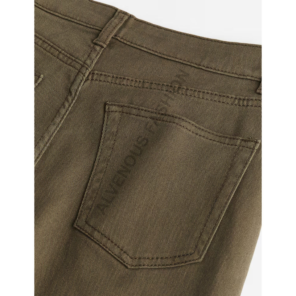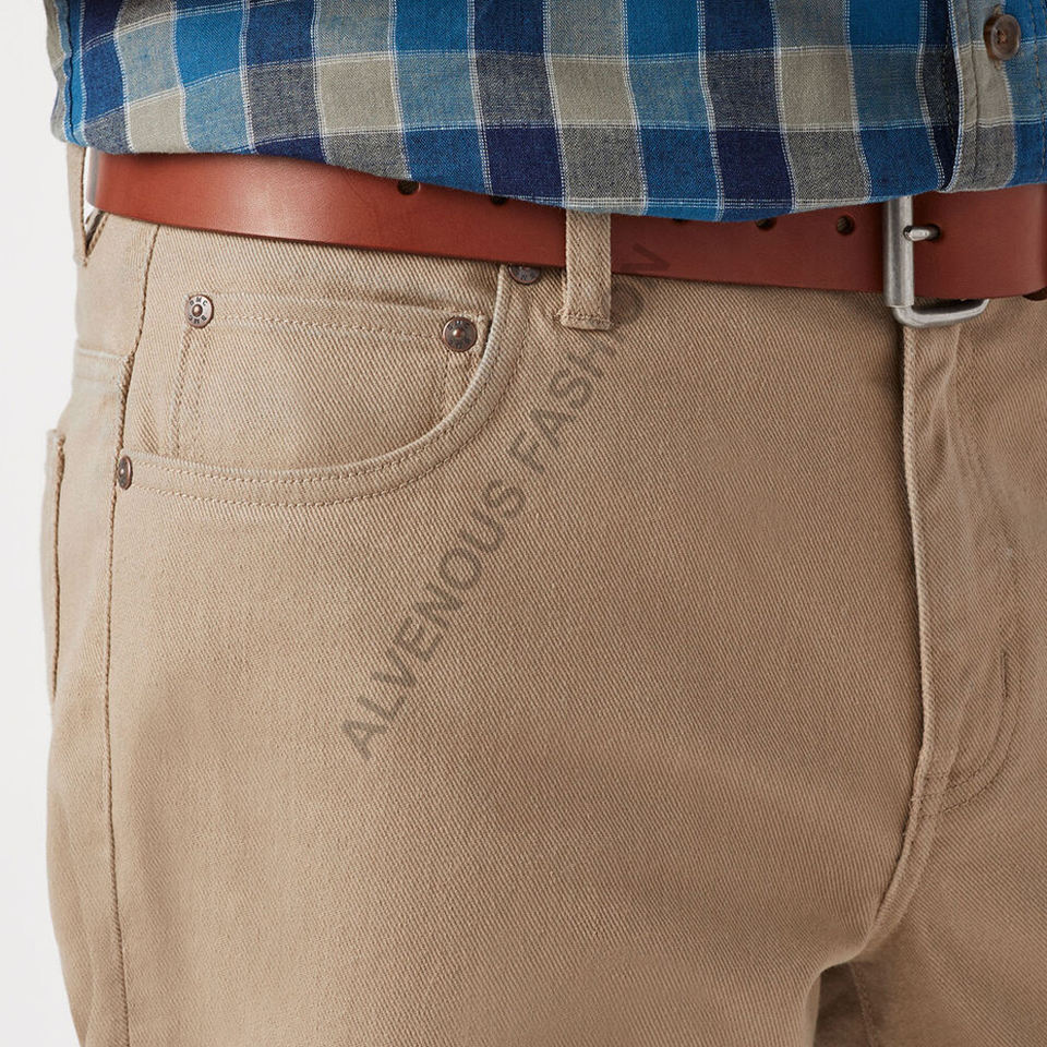กางเกงผ้าทอลายทแยงผ้าฝ้าย100% สำหรับผู้ชายกางเกงทรงตรงมีซิปกางเกงทรงหลวมสีพื้น
