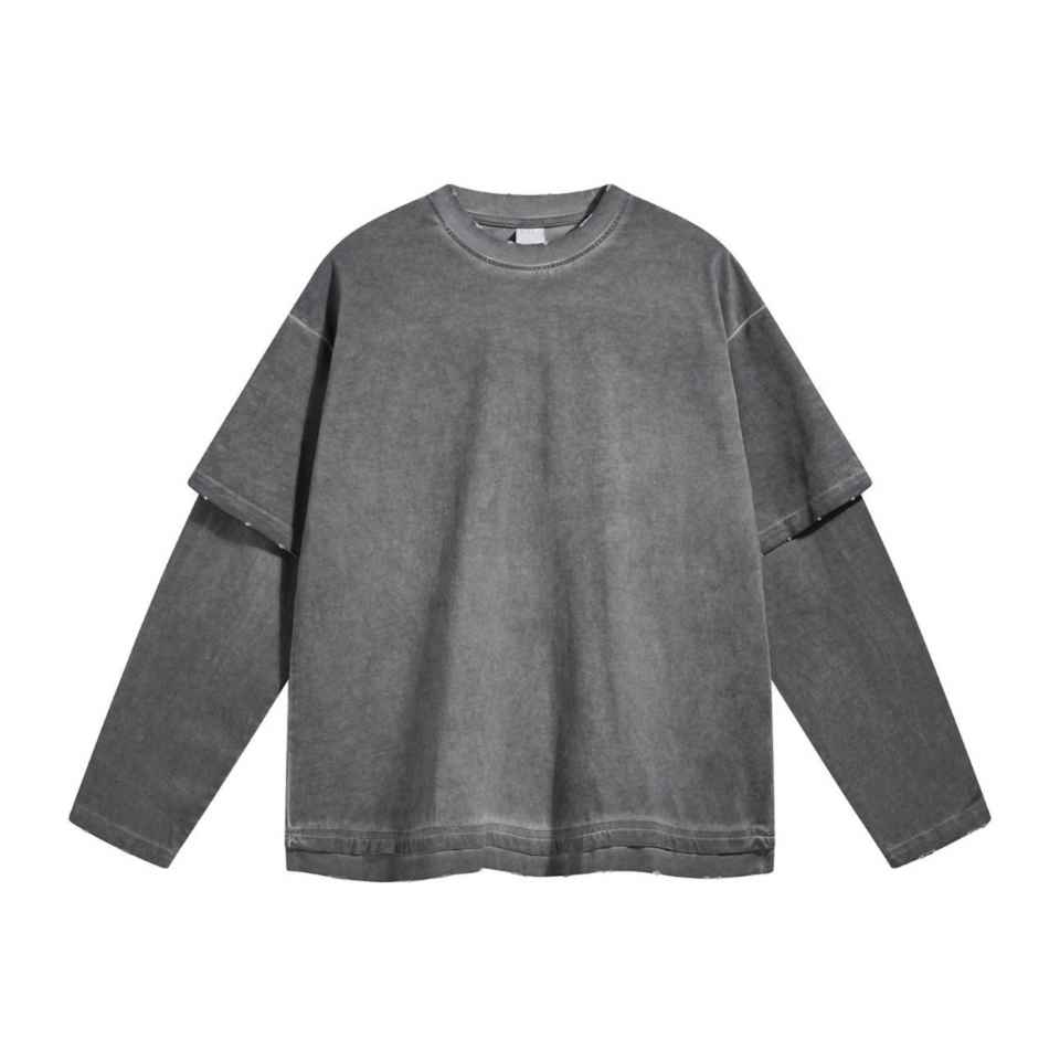 เสื้อยืดแขนยาวผ้าฝ้าย100% สองชิ้นเสื้อยืดแขนยาวเสื้อสองชั้นพิมพ์ลายสตรีท