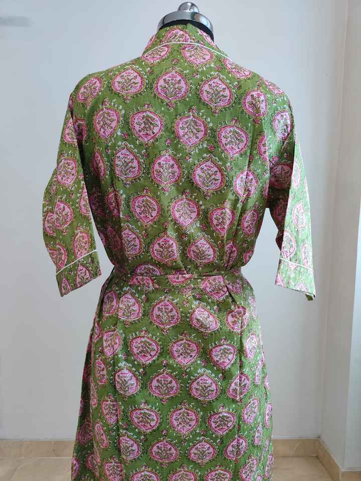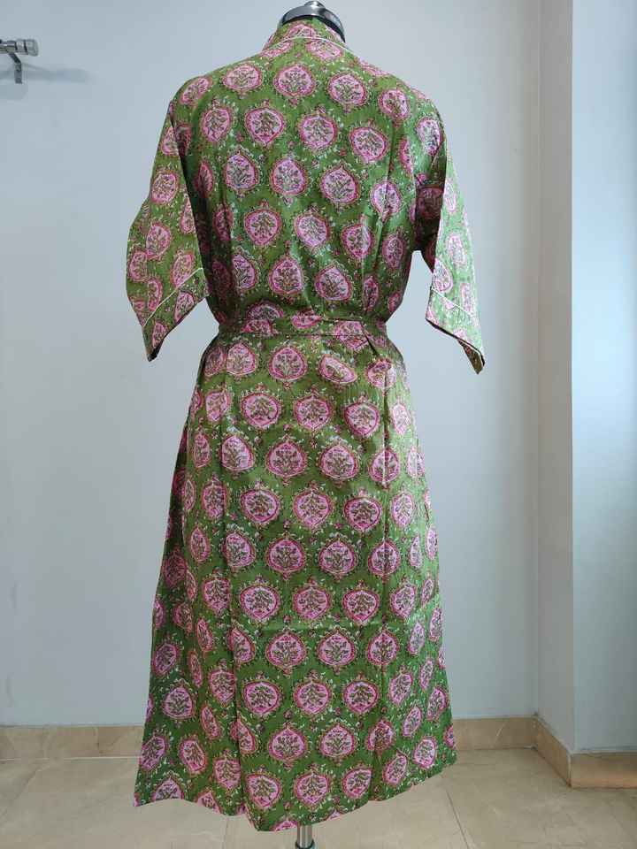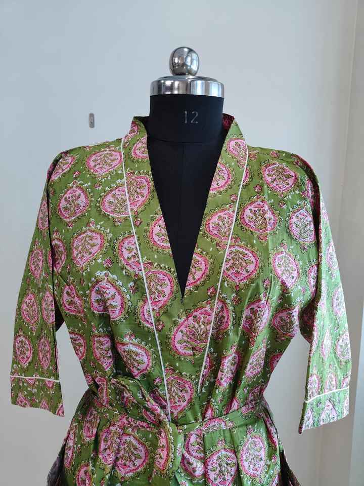 ชุดกิโมโนผ้าฝ้ายแท้ 100% คอวี แขนสั้น ลายดอกไม้แบบอินเดีย สำหรับผู้หญิง สวมใส่สบายๆ ในฤดูร้อน ผลิตที่รัฐราชสถาน