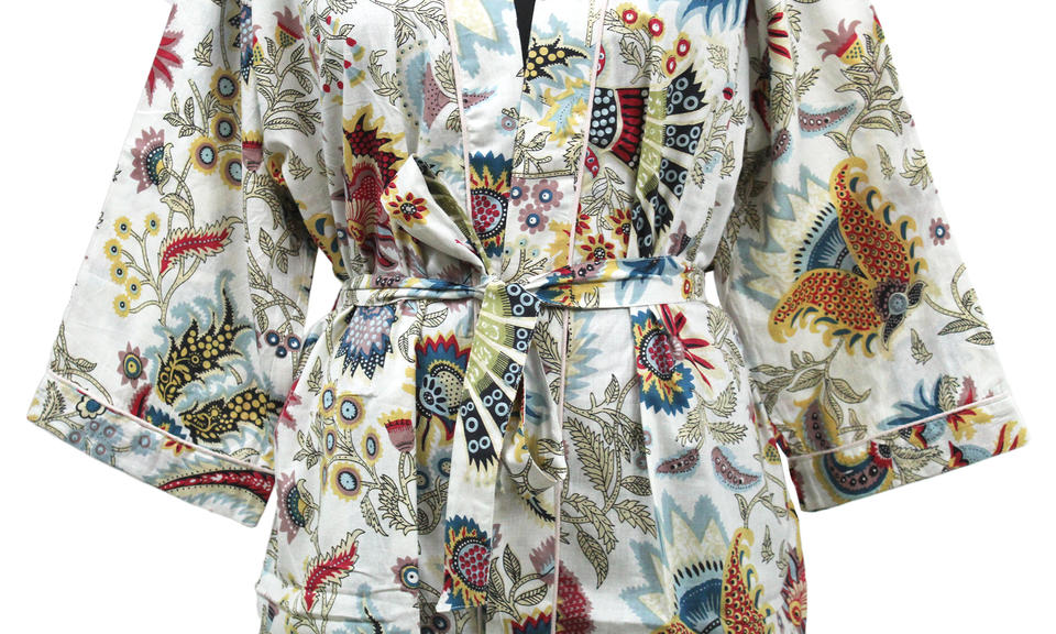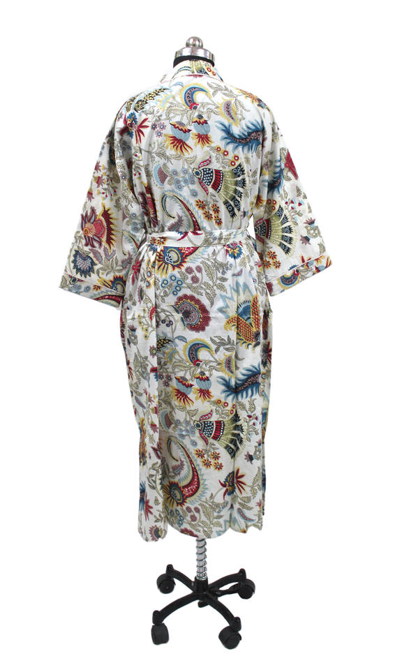 ชุดกิโมโนผ้าคอตตอนสีขาวพิมพ์ลายน้ำหนักเบา, ชุดคลุมอาบน้ำชุดคลุมอาบน้ำชุดคลุมอาบน้ำชุดใส่ไปทะเลสำหรับฤดูใบไม้ผลิและฤดูร้อน