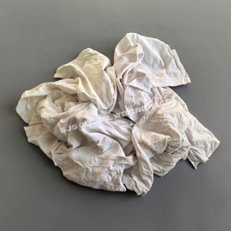 ผ้าเช็ดทำความสะอาดทำจากเสื้อยืดผ้าฝ้ายสีขาว 100% แบบตัดเป็นชิ้น สำหรับใช้ในอุตสาหกรรม มีสต็อกพร้อมส่ง