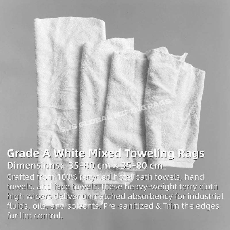 100% Cotton White Toweling Rags Recycled reclaimed Bath Towels No Stain Absorbent Wiping Rags for Cleaning