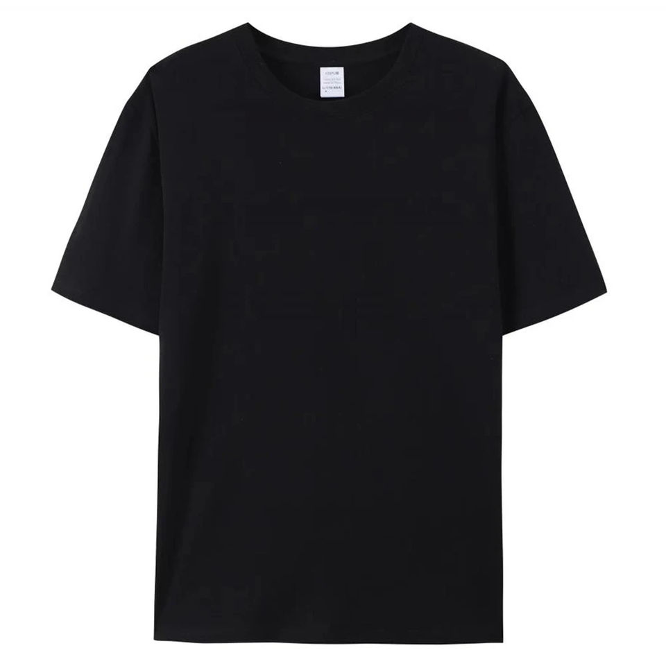 เสื้อยืดสีขาวผ้าฝ้าย 100% คุณภาพสูง คอกลม สำหรับผู้ชายและผู้หญิง
