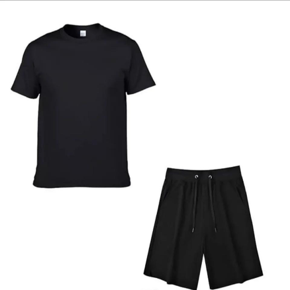 ชุดเสื้อยืดและกางเกงขาสั้นผู้ชายผ้าฝ้าย 100% ลายพิมพ์เรียบ สไตล์ลำลอง ทรงปกติ แฟชั่นสั่งทำพิเศษ