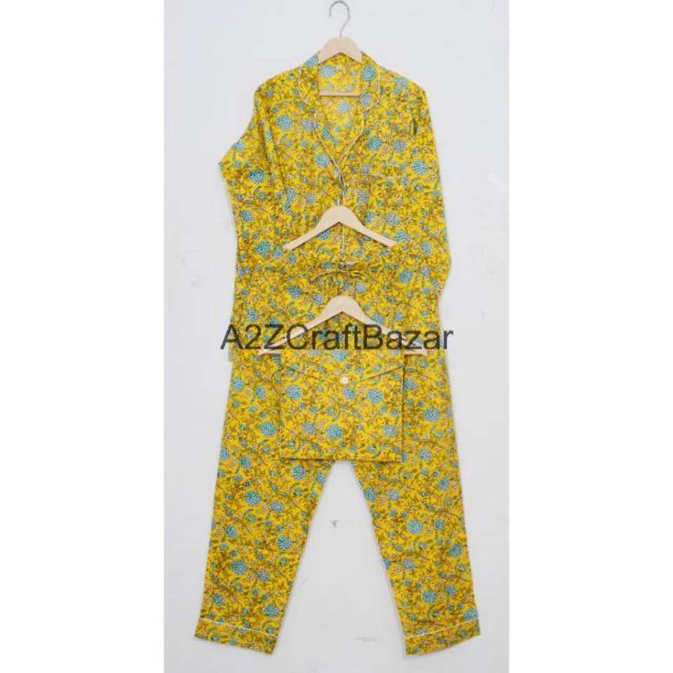 ผ้าฝ้าย 100% แขนยาวสำหรับผู้หญิงพิมพ์ลายดอกไม้คอปกแบบพับได้เอวยางยืดนุ่มระบายอากาศได้ดีแห้งเร็วชุดนอนทุกฤดูกาล