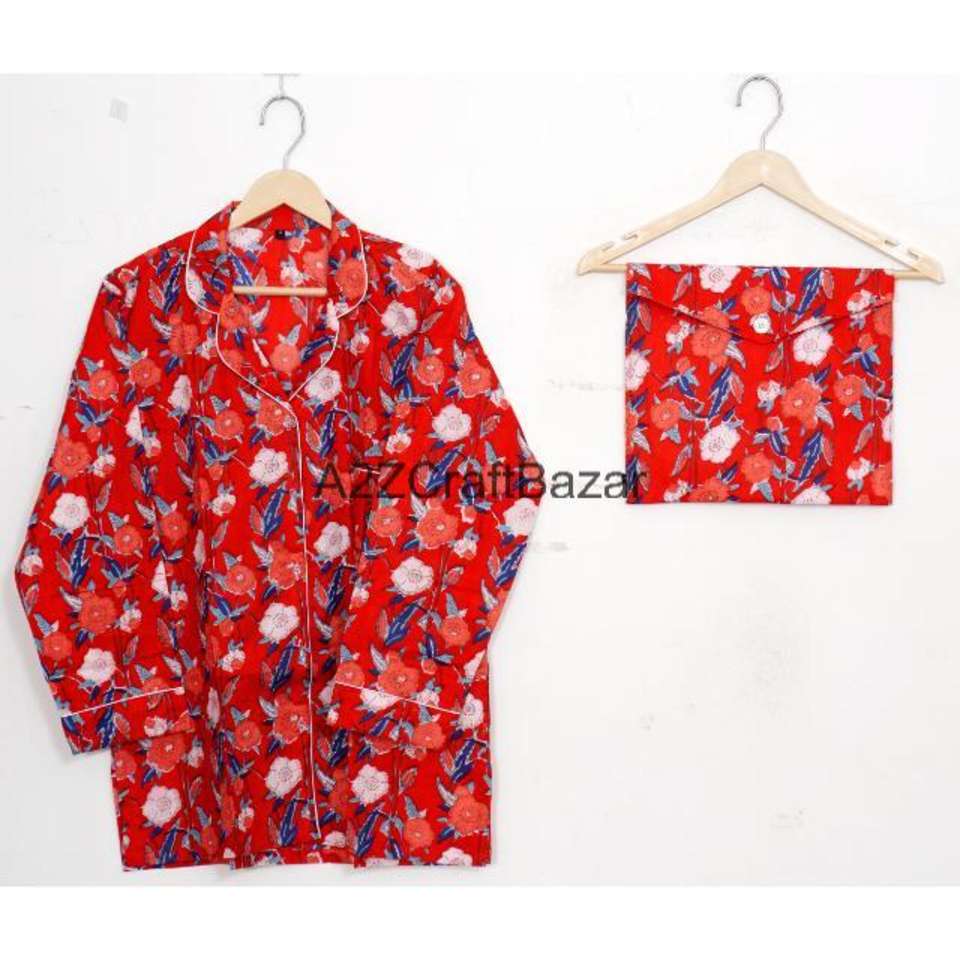 ชุดนอนสตรีผ้าฝ้าย 100% คอปกพับแขนยาวพิมพ์ลายดอกไม้เอวยางยืดทุกฤดูกาลวันหยุดนุ่มนวล