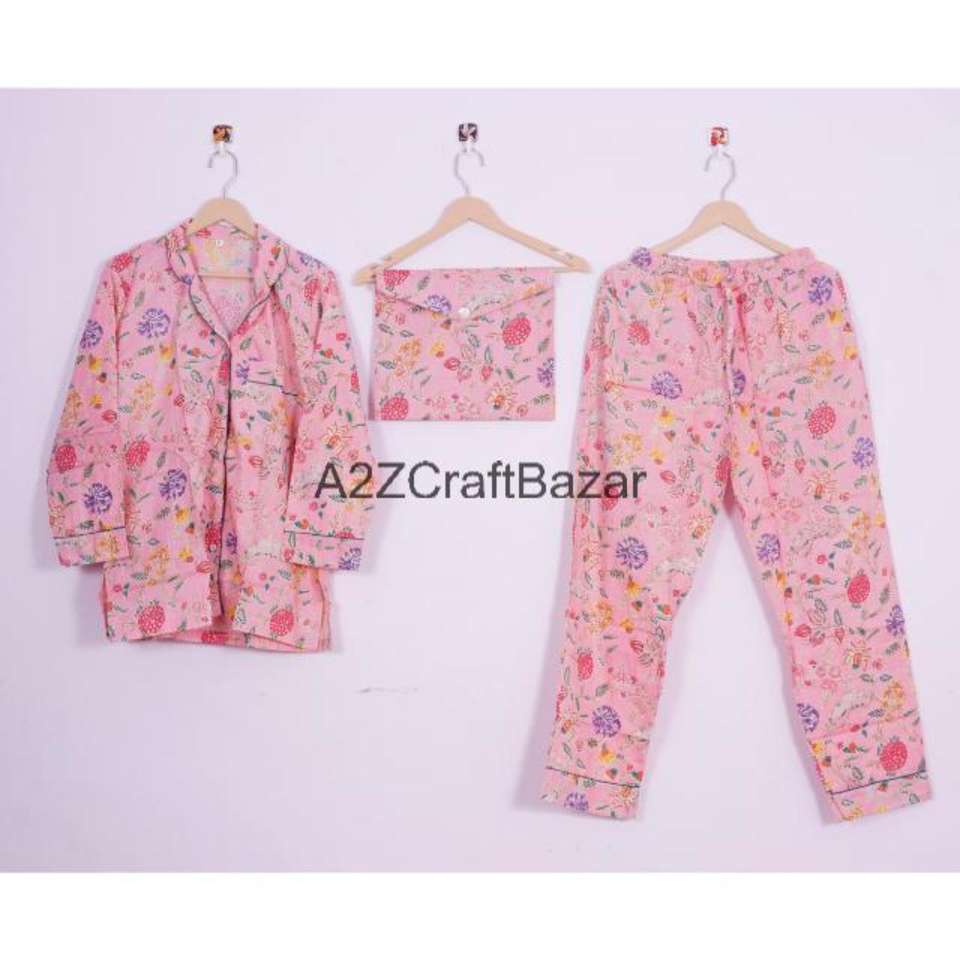 ชุดนอนผ้าฝ้าย 100% สำหรับผู้หญิง คอวี แขนยาว ลายดอกไม้ ชุดนอนใส่สบายทุกฤดู เหมาะสำหรับงานปาร์ตี้