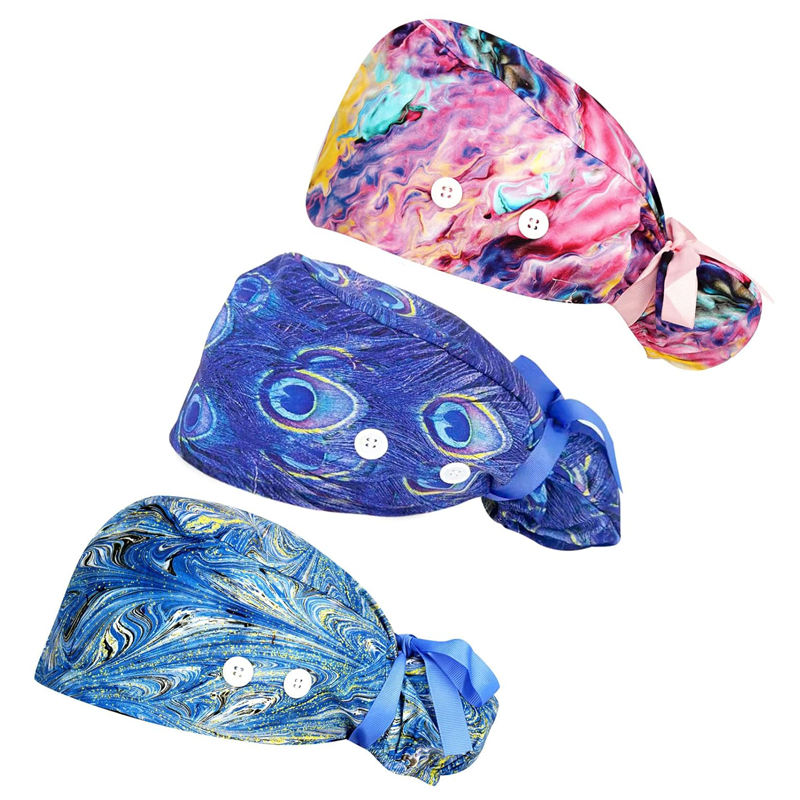 หมวกสครับผมหางม้าผ้าฝ้าย100% สำหรับผู้หญิงหมวกผ้าซาตินมีสายรัดผมทรงหางม้าหมวกผ่าตัดหัวคลิปหนีบผ้าซาติน