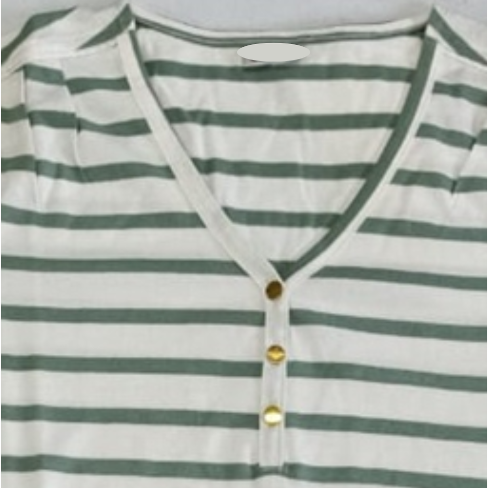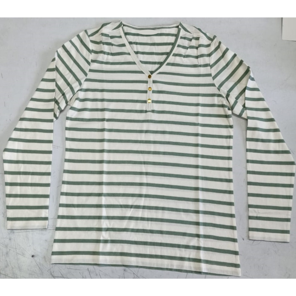 เสื้อยืดผู้หญิงคอวี แขนปกติ ทรงปกติ ลายทาง ย้อมสีด้วยเส้นด้ายฝ้าย 100% สไตล์ลำลอง