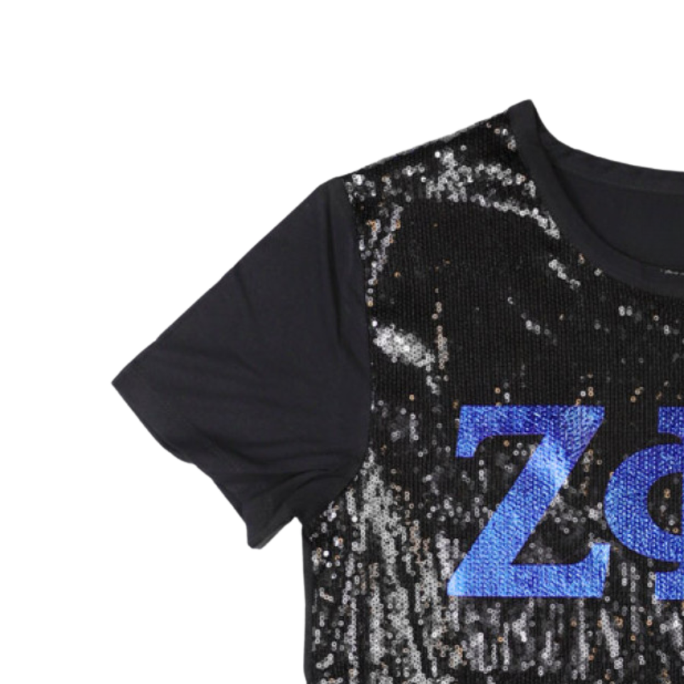 เสื้อยืดแขนยาวผ้าคอตตอน100ปักเลื่อมสำหรับผู้หญิงลาย Zeta phi Beta เสื้อชูชีพสไตล์กรีกลำลองสีดำแวววาว