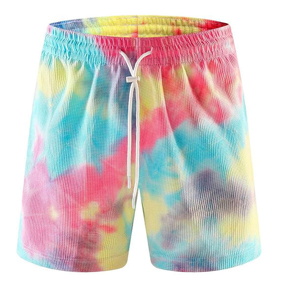 กางเกงขาสั้นมัดย้อมสำหรับผู้ชายผ้าคอตตอนพิมพ์ลายแห้งเร็วระบายอากาศได้ดีทำจากผ้าฝ้าย100%