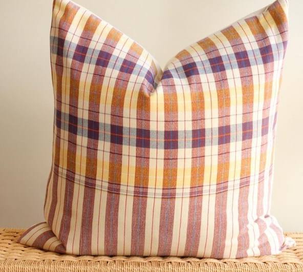 ปลอกหมอนอิงผ้าฝ้ายทอลายตาราง 100% ปลอกหมอนอิงตกแต่งโซฟา ปลอกหมอนอิงผ้าฝ้ายย้อมเส้นด้ายลายตาราง ปลอกหมอนอิงผ้าทอลายสก๊อต
