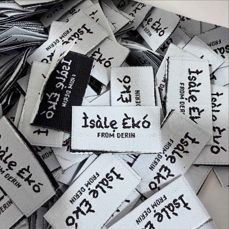 ป้ายผ้าทอมือติดเสื้อพร้อมโลโก้ขนาด2x5ซม. พับได้ตรงกลางพับได้สำหรับ100