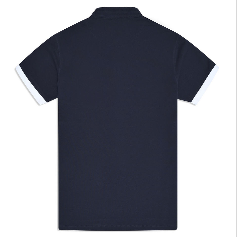 เสื้อยืดผ้าเจอร์ซีย์สีขาวกรมท่าสำหรับผู้ชายเสื้อคอปกแบบบล็อกสีน้ำเงินเข้มปรับแต่ง100% เป็นมิตรกับสิ่งแวดล้อม