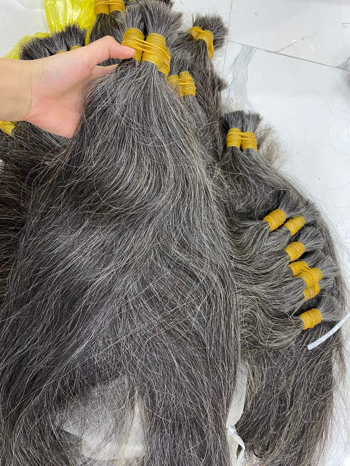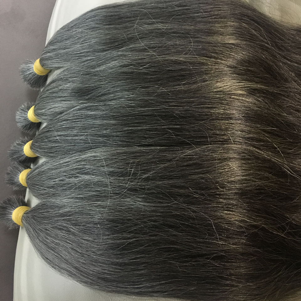 วิกผมมนุษย์ติดหนังกำพร้า100% จากเวียดนามวิกผมมีลูกไม้ด้านหน้าผมตรงผมต่อแบบถักสีเทาธรรมชาติ