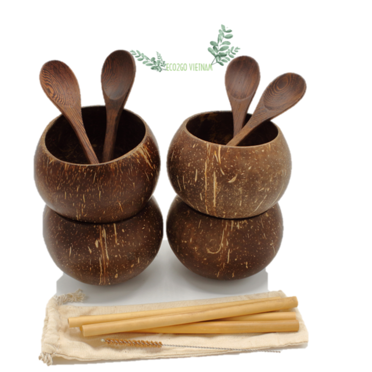 100% เป็นมิตรกับสิ่งแวดล้อมกะลามะพร้าวชามขนาดเล็กธรรมชาติเวียดนามชุดที่มีแกะสลักเลเซอร์โลโก้ขนาดที่กำหนดเองทำโดย Eco2go เวียดนาม