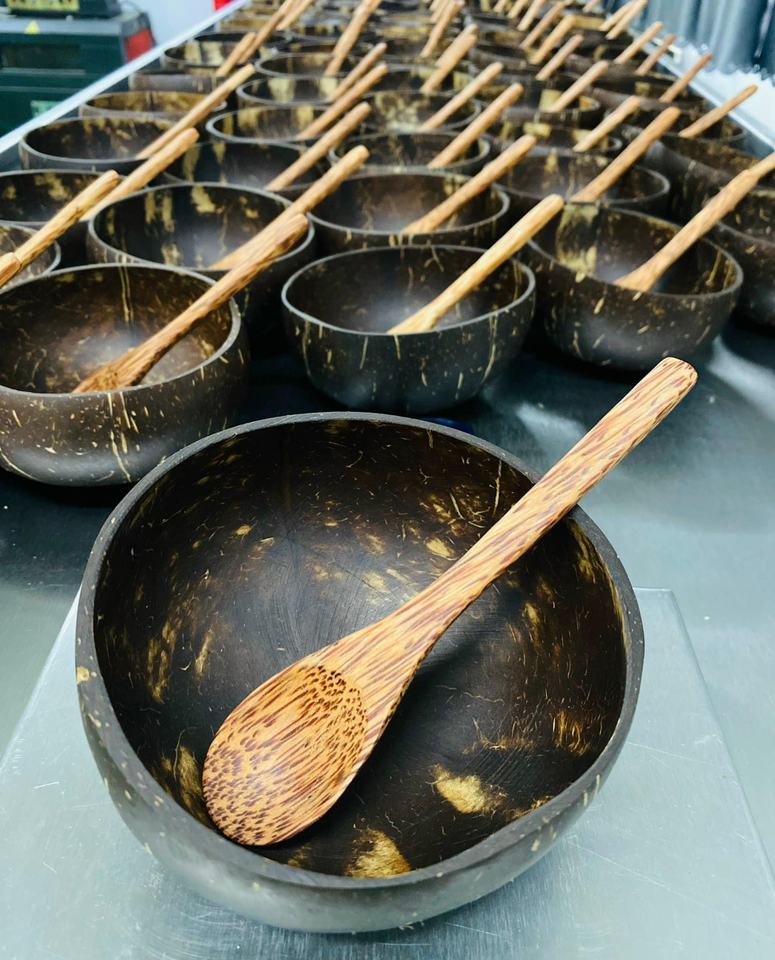 ชามกะลามะพร้าวแกะสลักด้วยมือเป็นมิตรกับสิ่งแวดล้อมชามไม้ไผ่ธรรมชาติส่งออกจากโรงงานเวียดนาม