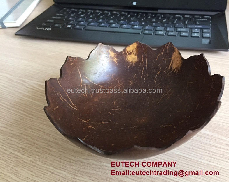 ชามกะลามะพร้าวขัดเงา100% เป็นมิตรกับสิ่งแวดล้อมงานหัตถกรรมเวียดนามสำหรับใช้ในบ้านสำหรับก๋วยเตี๋ยวสลัดผลไม้และข้าวงานฝีมือตามธรรมชาติ
