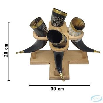ชุดเขาควาย/เขาสัตว์คุณภาพส่งออก 100% สำหรับดื่มเบียร์แบบไวกิ้ง 4 ชิ้น พร้อมขาตั้งเขาและอัญมณีอาเกต โดย f s i