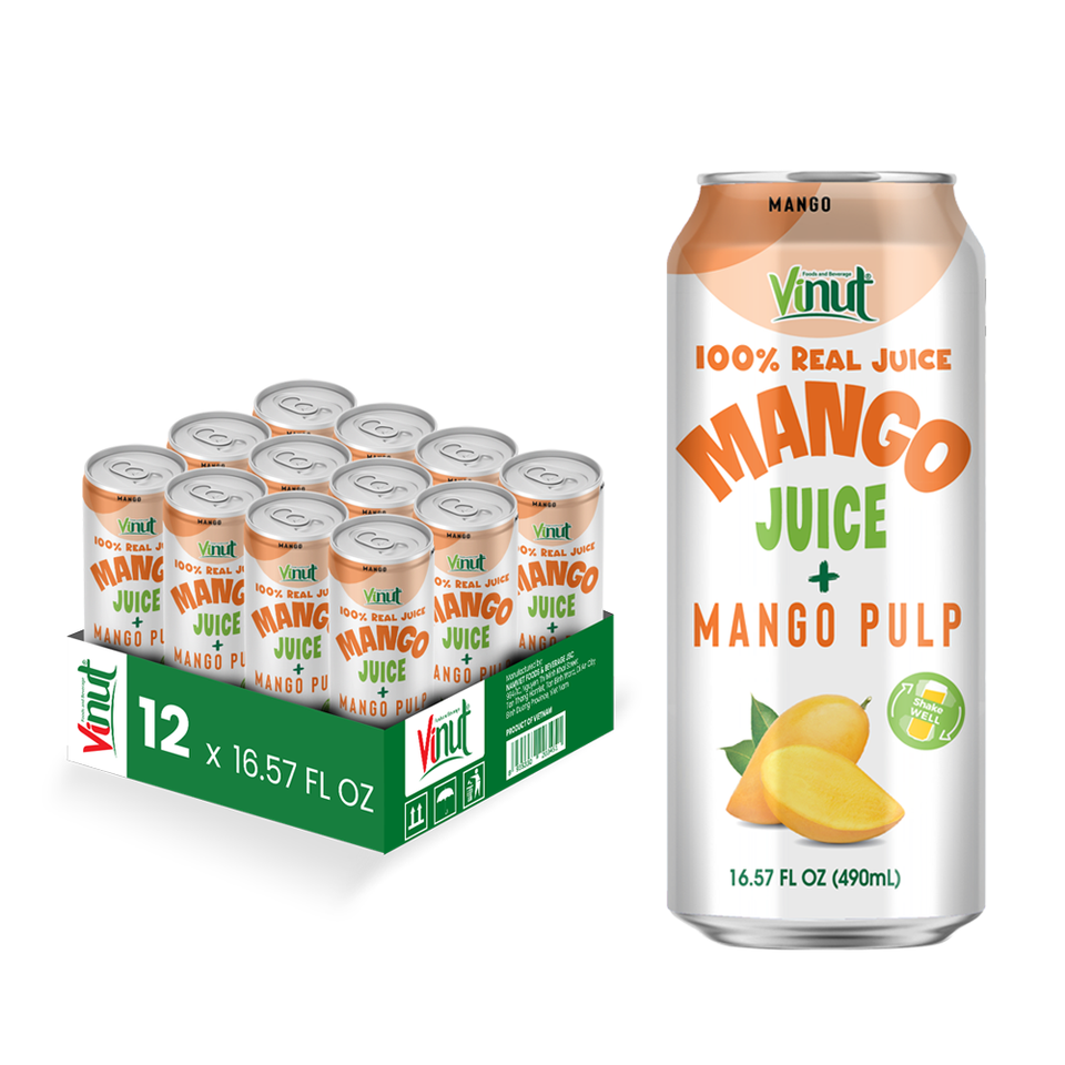 น้ำมะม่วงคั้นสด 100% ขนาด 500 มล. ไม่มีน้ำตาล พร้อมเนื้อ สำหรับแบรนด์ Brix 10 อายุการเก็บรักษา 24 เดือน รับผลิตแบบ OEM และ Private Label