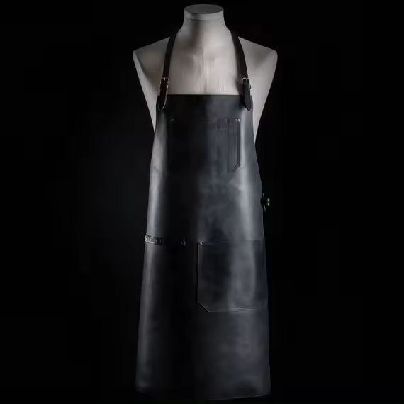 ผ้ากันเปื้อนสำหรับช่างตัดผมสำหรับผู้ชายหนังวัวแท้สีดำแท้100% ออกแบบโลโก้ตามสั่งสีน้ำตาลสีดำของแท้ทนทาน