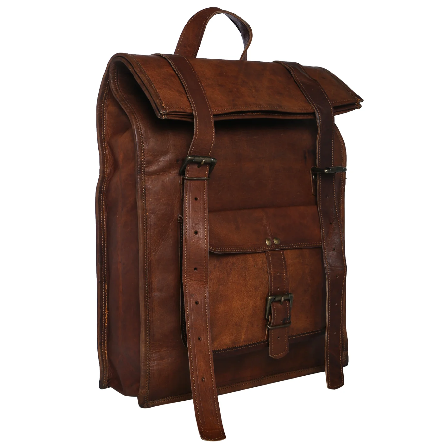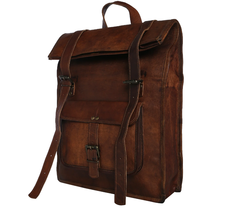 กระเป๋าเป้สะพายหลังใส่แล็ปท็อป17นิ้วสำหรับผู้ชายทำมือสไตล์วินเทจหนังแท้ลายไม้สไตล์วินเทจจุของได้เยอะ100%