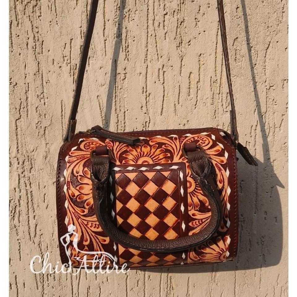 กระเป๋าเดินทางหนังแท้ 100% รุ่นมินิสปีดดี้ ดัฟเฟิลแบ็ก คุณภาพสูง สำหรับวันหยุดสุดสัปดาห์ ลายดอกไม้แกะสลักแบบวินเทจ ลายตารางหมากรุก