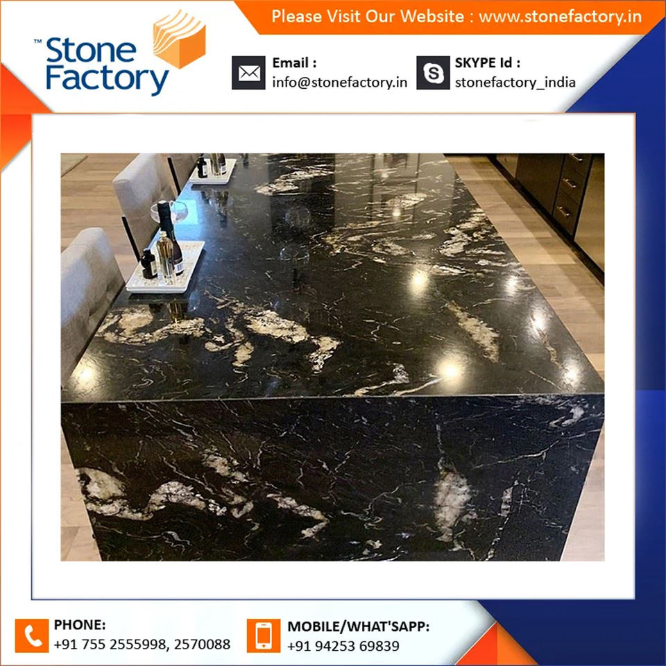 100% เคาน์เตอร์ครัวหินแกรนิตสีดำไทเทเนียมแท้ขนาดมาตรฐานดีไซน์ทันสมัยสไตล์ไฟไหม้เรียบ