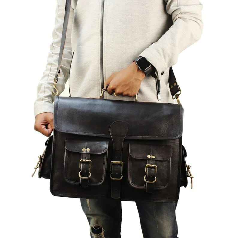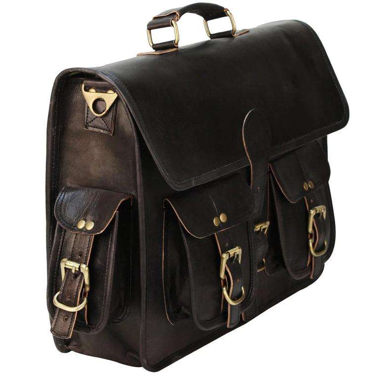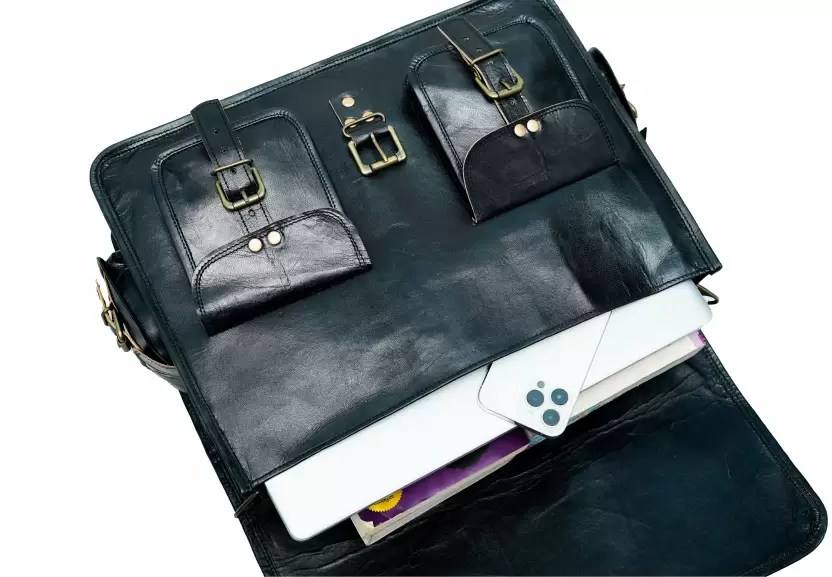 กระเป๋าเอกสารสำหรับผู้ชายทำจากหนังควายสีดำทำมือคุณภาพเยี่ยมของแท้100% มี4ช่อง11*15นิ้วนิ่มใช้ทำธุรกิจ