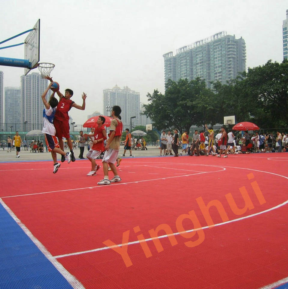 100% รับประกันว่าพื้นกีฬาระดับพรีเมียมสไตล์การติดตั้งที่มีประสิทธิภาพสำหรับกีฬาบาสเก็ตบอล-กระเบื้อง PP ระดับพรีเมียม