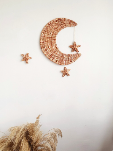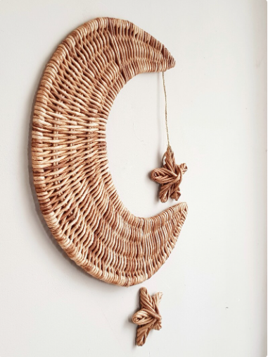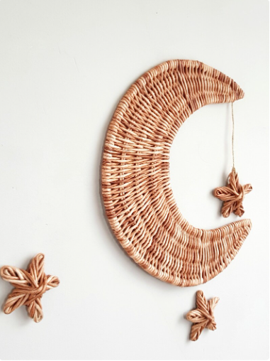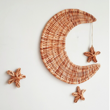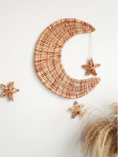 ชื่อผลิตภัณฑ์:100% HANDWOVEN Crescent Moon ตะกร้า, Boho ตะกร้า