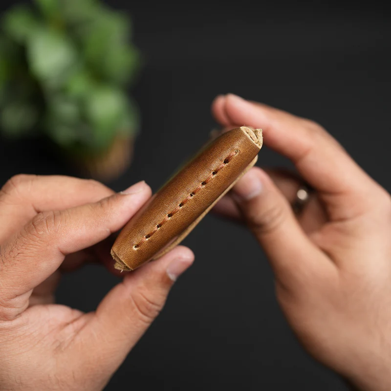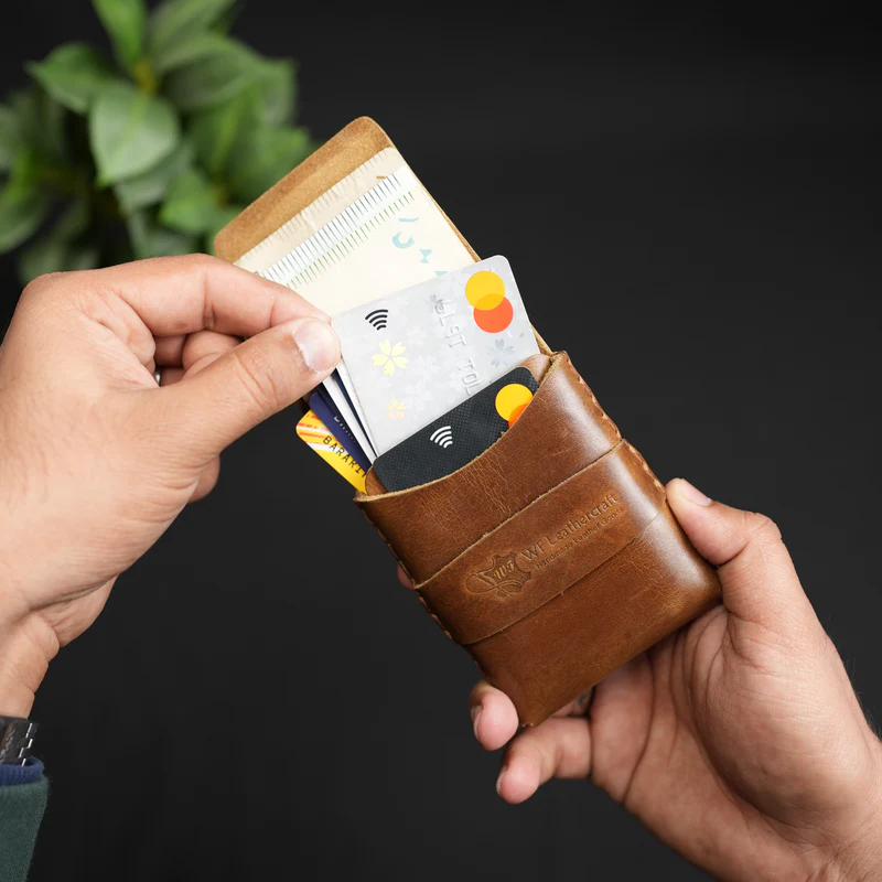 กระเป๋าสตางค์หนังแท้แบบบาง พรีเมียม หนังฟูลเกรน สีโครมแทน ทำมือ ดีไซน์มินิมอล ขนาดกะทัดรัด ใส่บัตรได้