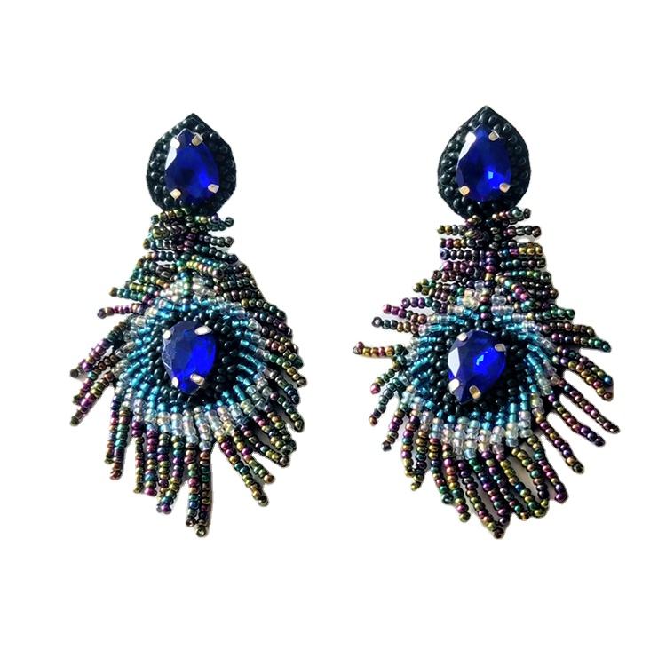 หมายเลขรุ่น:Peacock Feather in Rainbow Beads-Earrings