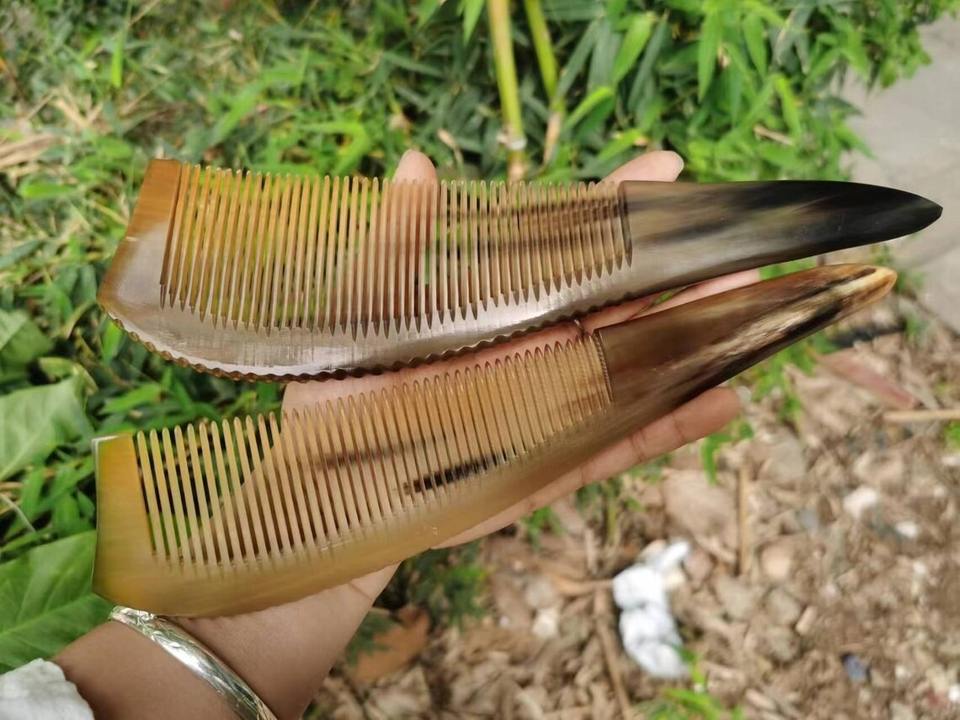 หวีผมควายฮอร์นหวีผมแฮนด์เมดเป็นมิตรต่อสิ่งแวดล้อมแบบ100% ชิ้นเดียวสำหรับสัตว์ทะเล